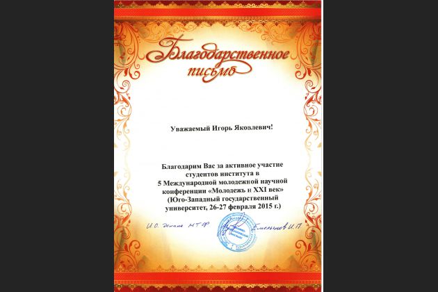 С 26 по 27 февраля прошла 5-я Международная молодежная научная конференция в Юго-Западном государственном университете «Молодежь и XXI век – 2015».